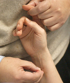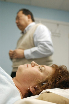 Tao, a traditional Chinese medicine practitioner, removes the needles